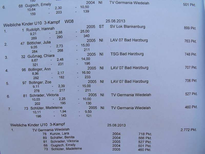 Jubiläums-Sportfest in Wiedelah - zgl. KM - Diskus am 26.08.2013